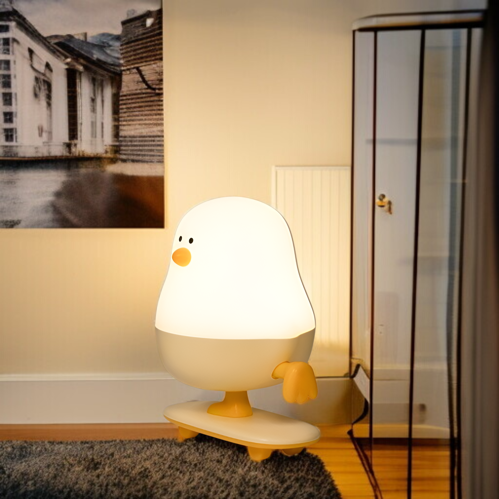 小さな鶏の創造的な夜の光、かわいい夜の光、鶏の夜の光、漫画の夜の光、動物の夜の光、スケートボードの夜の光
